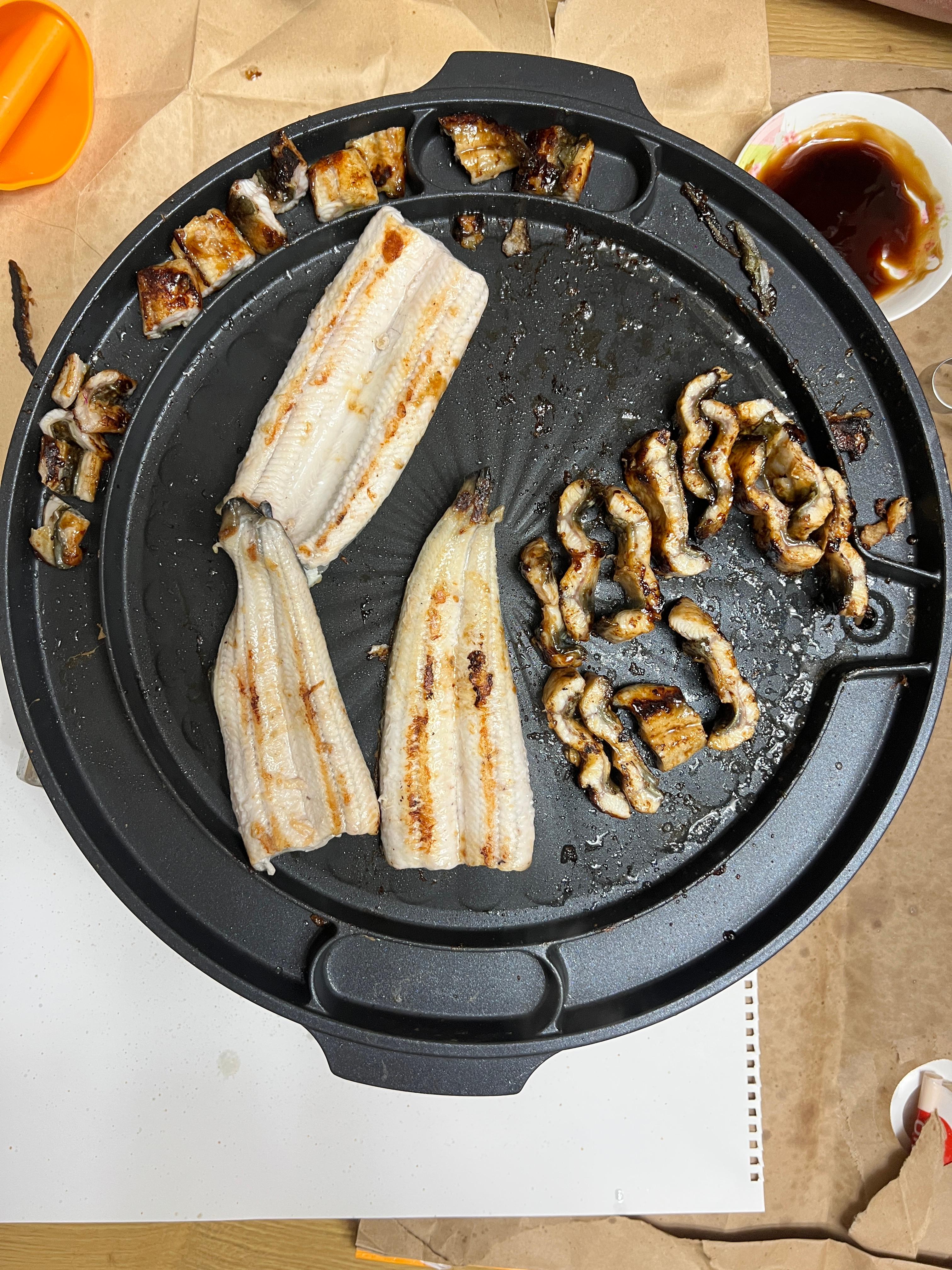 - 에어프라이어 구이: 에어프라이어에 종이 호일을 깔고 장어를 넣은 후 180도에서 약 15-20분 정도 구워줍니다. (기름이 많이 나올 수 있으니 중간에 기름을 제거해주세요.)